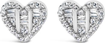 Silver 1/2 Cttw Round and Baguette Diamond Composite Heart Shaped Stud Earring