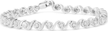 This link bracelet boasts a timeless silhouette of halo links that coordinate with sinuous S-links. The lustrous S-link motifs exude an awe-inspiring appeal along with a brilliant centerpiece diamond cradled in a stone-enhancing miracle plate setting and haloed by sparkling pave-set diamonds. It's all in the detail for this stunning piece where you will notice the textured ornamentations and smooth polish of the .925 sterling silver. The diamonds in this bracelet total 1/2 cttw and are of an approximate I-J Color and I2-I3 Clarity. This bracelet fastens securely with a box with clasp. It is 7.25 inches long, best for small and medium sized wrists.