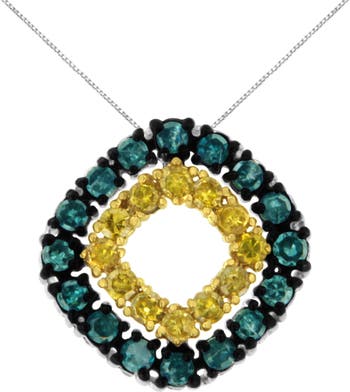 Silver 1/2 Cttw Treated Blue and Yellow Diamond Double Square Pendant Necklace