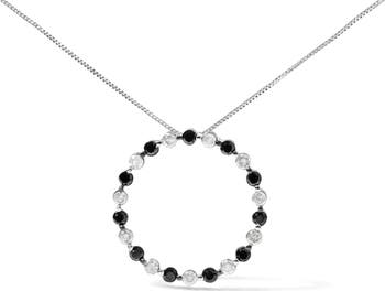 Silver 1 3/4 Cttw Black and White Diamond Open Circle Hoop Pendant Necklace