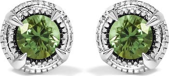 Haus of Brilliance Silver 1/3 Ct Green Diamond Solitaire Milgrain Stud Earrings, Alternate, color, Green Diamond