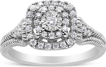 Dazzle with this glamorous and intricately designed diamond cocktail ring! Brilliantly set, this beautiful piece is crafted in genuine .925 sterling silver, a metal that will stay tarnish free for years to come. The central stone is round-cut and miracle set for a larger appearance, and flanked by smaller round-cut diamonds on all sides in a circular design. Diamonds and textured silver make up the band of this piece for a magnificent finish. You will love how this 1/3 c.t. ring sparkles on your finger and lights up your look!