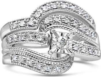Silver 1/3 Cttw Diamond Crisscross Engagement Ring Bridal Set