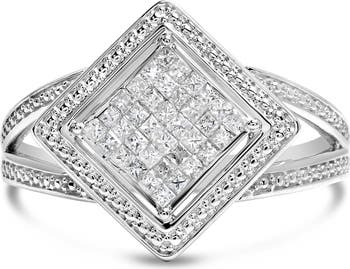 Introducing a mesmerizing masterpiece crafted for the elegant souls! This .925 Sterling Silver Rhombus and Beaded Halo Ring effortlessly captures attention with its invisible set Princess-Cut Diamonds. With a total weight of 1/3 cttw, the 36 dazzling diamonds adorn this ring in a symphony of brilliance. The H-I color diamonds shimmer with grace, while the SI1-SI2 clarity ensures utmost clarity. Designed to allure, this exquisite ring is a true symbol of sophistication and femininity. A must-have for women who appreciate the finest things in life.