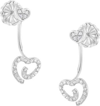 Haus of Brilliance Silver 1/4 Ct Diamond Swirl Heart Front/Back Earrings, Main, color, White