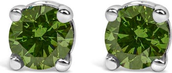 Silver 1/4 Ct Green Diamond Classic Stud Earrings