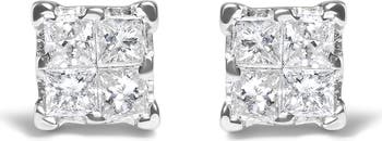 Silver 1/4 Ct Invisible Princess Diamond Composite Quad Stud Earrings