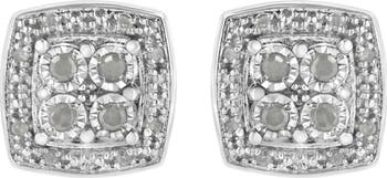 Silver 1/4 Ct Round Diamond Square Shape Milgrain Stud Earrings