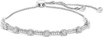 Silver 1/4 Cttw Diamond Bolo Square and Rectangle Bolo Bracelet