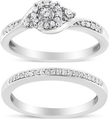 Silver 1/4 Cttw Diamond Halo and Swirl Engagement Ring and Wedding Band Set
