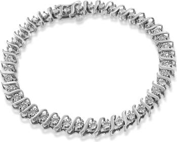Classic and elegant, this beautiful silver bracelet is designed with an alternating pattern of "s" links and miracle set, natural diamonds. The silver is genuine .925 sterling silver, plated with rhodium (a platinum-family metal) for a lifetime of tarnish-free wear. The diamonds are round-cut and have a total carat weight of 1/4 cttw. The diamonds and silver work together to create a striking look, as this bracelet will shine bright on your wrist. This bracelet fastens securely with a box clasp. It is 7.25 inches long.