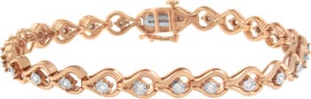 Elegant and timeless, this gorgeous sterling silver link bracelet features 0.29 carat total weight of round, promo quality diamonds in our unique miracle-plate setting, which centers each genuine diamond in a mirror-finish, high-polish frame that gives the illusion of a much larger stone. Promo quality diamonds are on the lowest of diamond color and quality scale and are milky and cloudy in nature. The tennis bracelet features open teardrop shaped links with diamonds in the center. The 7” bracelet fastens with a box with tongue and safety clasp. This authentic design is crafted of real 92.5% sterling silver that has been electro-coated with your choice of either 10K rose gold or silver-colored rhodium (a platinum-family metal), ensuring it will keep a tarnish-free shine for years to come. This classic bracelet makes a great gift for any occasion! Whether worn for daytime glamour or evening sparkle, this bracelet is gorgeously versatile. Give her a gift that will perfectly complement her favorite ensemble.