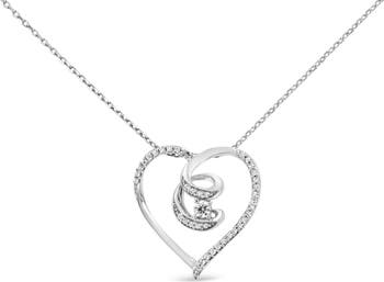Silver 1/4 Cttw Diamond Open Heart Twisted Awareness Ribbon Pendant Necklace