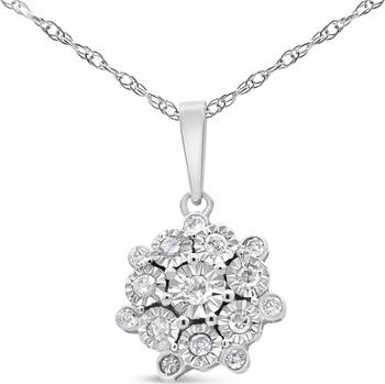 Haus of Brilliance Silver 1/4 Cttw Miracle Set Diamond Floral Cluster Pendant Necklace for Women, Main, color, White