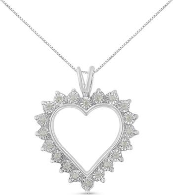 Silver 1/4 Cttw Miracle Set Diamond Open Heart Pendant Necklace