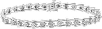 Silver 1/4 cttw Miracle Set Diamond Sleek and Open "V"Bracelet