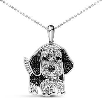 Silver 1/4 cttw White and Black Diamond Dog Pendant Necklace 18 inch