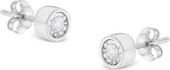 Frame her face with the bold and impressive look of these fabulous diamond bezel stud earrings. Crafted in fabulous sterling silver, each earring features a mesmerizing round-cut 0.10 carat brilliant-cut rount diamond in a fluted frame-style miracle setting, set inside streamlined modern barrel bezels. Captivating with 0.20 in total of diamonds and a brilliant buffed luster, these anytime post earrings fasten securely and comfortably. This stud is the perfect item to wear on any outfit and is considered an investment piece.