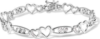 Silver 1/5 Cttw Diamond Double Heart Link Bracelet