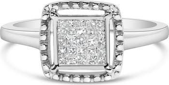 Silver 1/5 Cttw Invisible Set Princess Cut Diamond Promise Ring with Beaded Halo