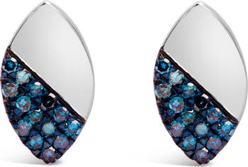 Immerse yourself in the elegance of these .925 sterling silver stud earrings, where artistry and brilliance converge. Each pear-shaped piece presents a striking dichotomy: one half gleams with a mirror-polish finish, a testament to the meticulous craftsmanship, while the other half dazzles with 1/6 carat of naturally sourced blue diamonds. These gems, treated to accentuate their mesmerizing hue, are set against a blue rhodium backdrop, enhancing their vivid clarity (I2-I3) and creating a captivating visual contrast. Rhodium plating not only adds an extra layer of durability and shine but also ensures that each earring stands out as a testament to refined taste. The simplicity of the push-back closure melds seamlessly with the sophisticated design, offering ease without sacrificing style.