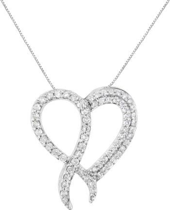 Haus of Brilliance Silver 1 cttw Diamond Heart and Ribbon 18" Pendant Necklace, Main, color, White