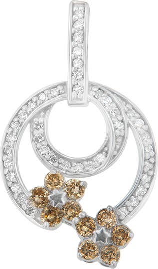A pair of sweet and stunning Champagne-colored diamond flowers bloom together on this captivating sterling silver pendant. They're both connected to a larger circle of diamonds and accented by an inner circle of diamonds at the center, creating a charming everyday piece for her collection.