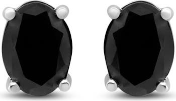 Add this stunningly unique diamond stud earrings to your jewelry collection and impress all your girlfriends. This beautiful pair of treated black studs are made from the finest .925 sterling silver, and is embellished with treated, black oval diamonds in a prong setting. The total diamond weight is 2 cttw, and is sure to dress up any outfit of yours. Wear this to a black tie event or a casual dinner out and enjoy the glamour it provides. Comes with a screw on mechanism for a more secure fit. Each diamond weighs approximately 1 carat.