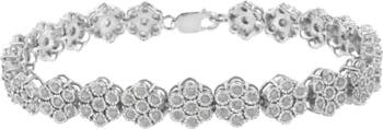 Silver 2.0 cttw Diamond 7 Stone Floral Cluster Link Bracelet