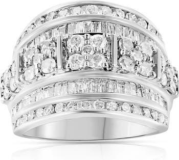 Silver 2.0 Cttw Round & Baguette Diamond Multi-Row Tapered Cocktail Ring
