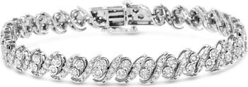 Silver 2.0 Cttw Round-Cut Diamond "S" Link Bracelet