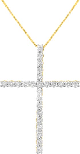 Share your faith with this stunning diamond cross pendant necklace. This cherished cross necklace for her, features 25 natural,round diamonds set in Sterling Silver. The pendant is suspended from an 18-inch box chain with spring ring. This fine jewelry cross necklace has a total diamond weight of 2 1/2 carats and is a contemporary classic. Color grade range is H-I and the clarity grade ranges from I2-I3.
