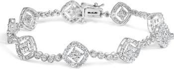 Silver 3.0 Cttw Diamond Halo Square Shape Link Bracelet