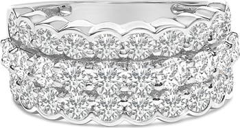 Silver 3.0 Cttw Lab Grown Diamond 3 Row Band Ring