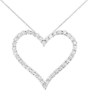Silver 3.0 cttw Round-Cut Diamond Open Heart Pendant Necklace