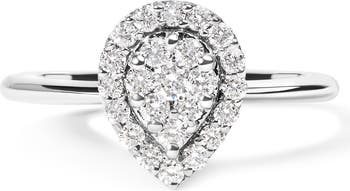 Silver 3/8 Cttw Lab Grown Diamond Cluster and Halo Pear Promise Ring