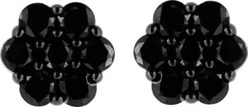 You will fall in love with these classic cluster stud earrings. A must have for any serious jewelry collection, these .925 sterling earrings boast an impressive 4.0 carat total weight of treated black diamonds with seven stones each. The earrings are floral clusters with seven round, brilliant cut diamonds in shared prong settings. The earrings have stacked open galleries. The stud style earrings have pushback closures. These classic, elegant floral cluster stud earrings make a great gift for any special occasion! Whether worn for daytime glamour or evening sparkle, these earrings are gorgeously versatile. Give her a gift that will perfectly complement her favorite ensemble.
