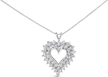 Silver 4.0 Cttw Diamond Two Row Open Heart 18" Pendant Necklace
