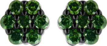 Silver 4.0 Cttw Round Treated Green Diamond Floral Cluster Stud Earring
