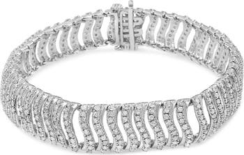 This silver 5.00 carat bracelet is glamour embodied. This piece is created in the finest .925 sterling silver, and plated with rhodium (a platinum-family metal) for a lifetime of tarnish-free wear. 5 carats of beautiful, natural round-cut diamonds are embellished on silver "s" links to make up this magnificent design. This piece is 7.25 inches long and comes with a box with clasp for a secure fit. The silver and diamonds on this bracelet creates an enchanting look that will bewitch anyone who lays eyes on it.