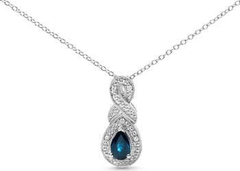Silver 6x4mm Pear Sapphire and Diamond Accent Infinity Drop Pendant Necklace