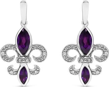 Silver Amethyst & Diamond Accent Fleur De Lis Dangle Stud Earrings