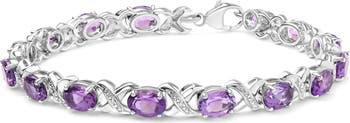 Haus of Brilliance Silver Amethyst & Diamond Accent X-Link Bracelet, Alternate, color, White