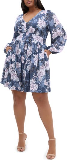 Smocking at the back waist creates a cinched silhouette in this charming floral-print dress framed by billowy long sleeves.