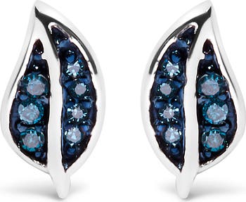 Silver Blue Diamond Accent Leaf Stud Earrings