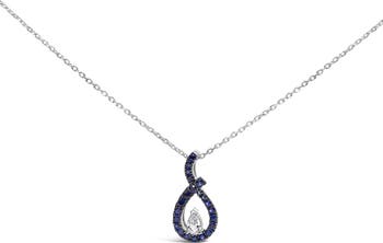 Haus of Brilliance Silver Created Blue and White Sapphire Teardrop Shaped Pendant Necklace, Main, color, White