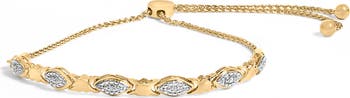 Unlock the doorway to refined elegance with this exquisite bracelet, where the classic allure of .925 sterling silver meets the twinkling charm of natural diamonds. The piece beautifully intertwines marquise shapes and heart links, each punctuated with a diamond that captures the dance of light with every movement. With a gleaming 14K Gold or rhodium plating, this accessory promises not only a lustrous finish but enduring protection against tarnish. The innovative bolo design adjusts smoothly between 6 and 9 inches, ensuring a flawless fit for any wrist size. It's not merely a bracelet but a versatile declaration of style, perfect for elevating everyday wear or adding a sophisticated touch to evening attire. Embrace this blend of functionality, beauty, and the sparkle of I-J color and I3 clarity diamonds, and let it be a shining emblem of your exquisite taste.
