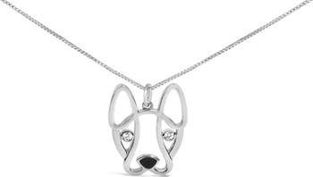Silver Diamond Accent and Black Enamel French Bullldog Pendant Necklace inch