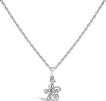 Silver Diamond Accent Flower Pendant Necklace