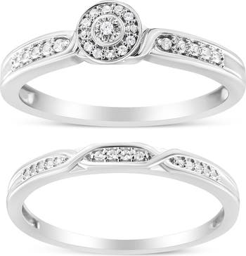 Silver Diamond Accent Frame Twist Shank Bridal Set Ring and Band